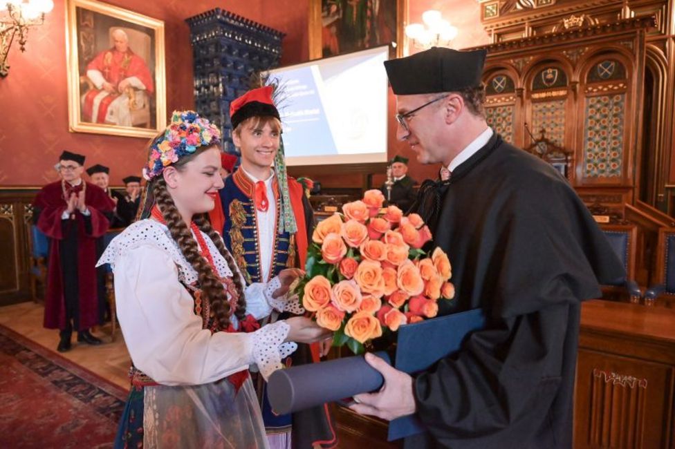 Die Goldmedaille "Plus ratio quam vis" ist die höchste Auszeichnung, die die Jagiellonen-Universität, die älteste polnische Universität, zu vergeben hat.